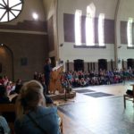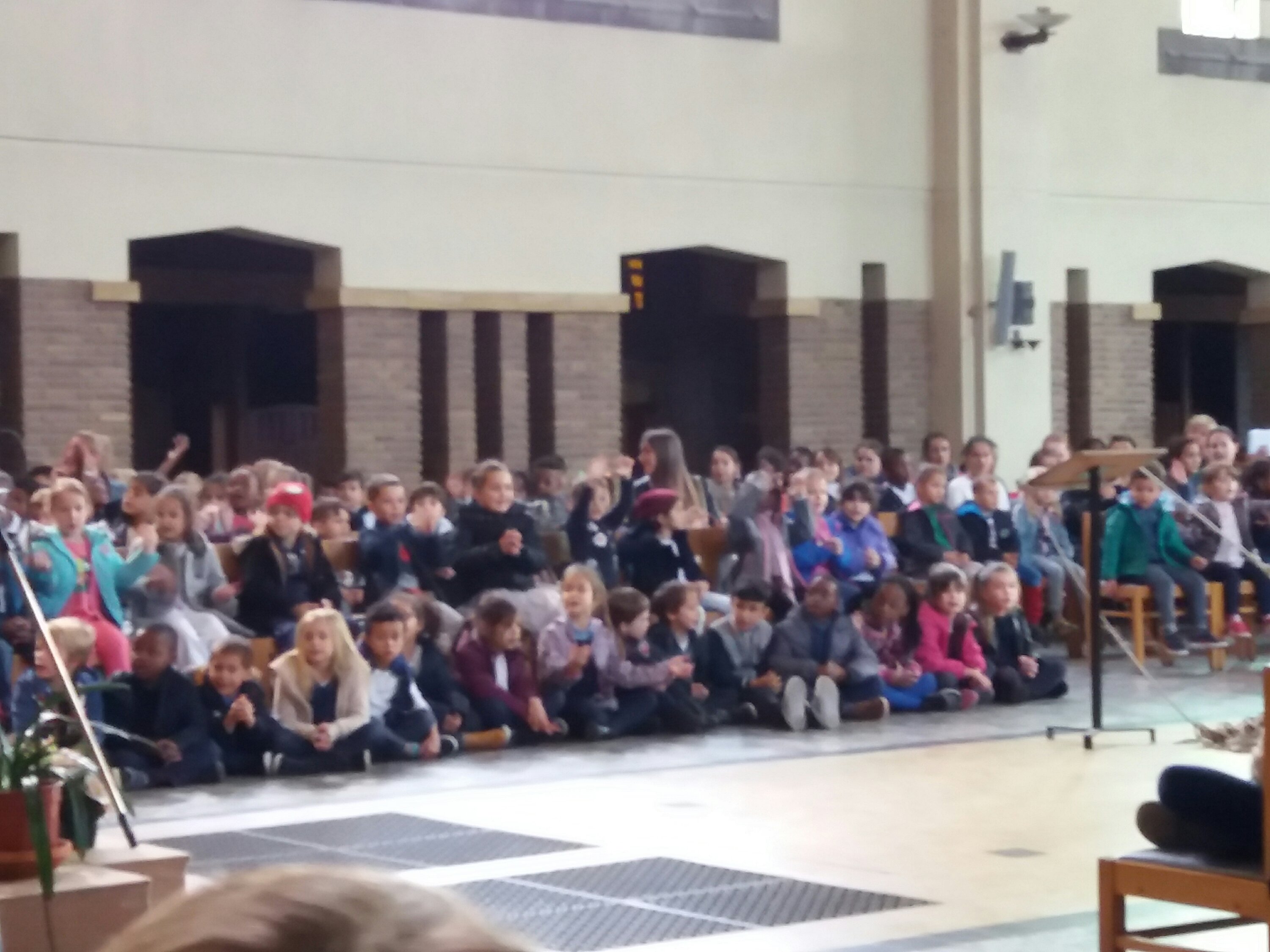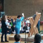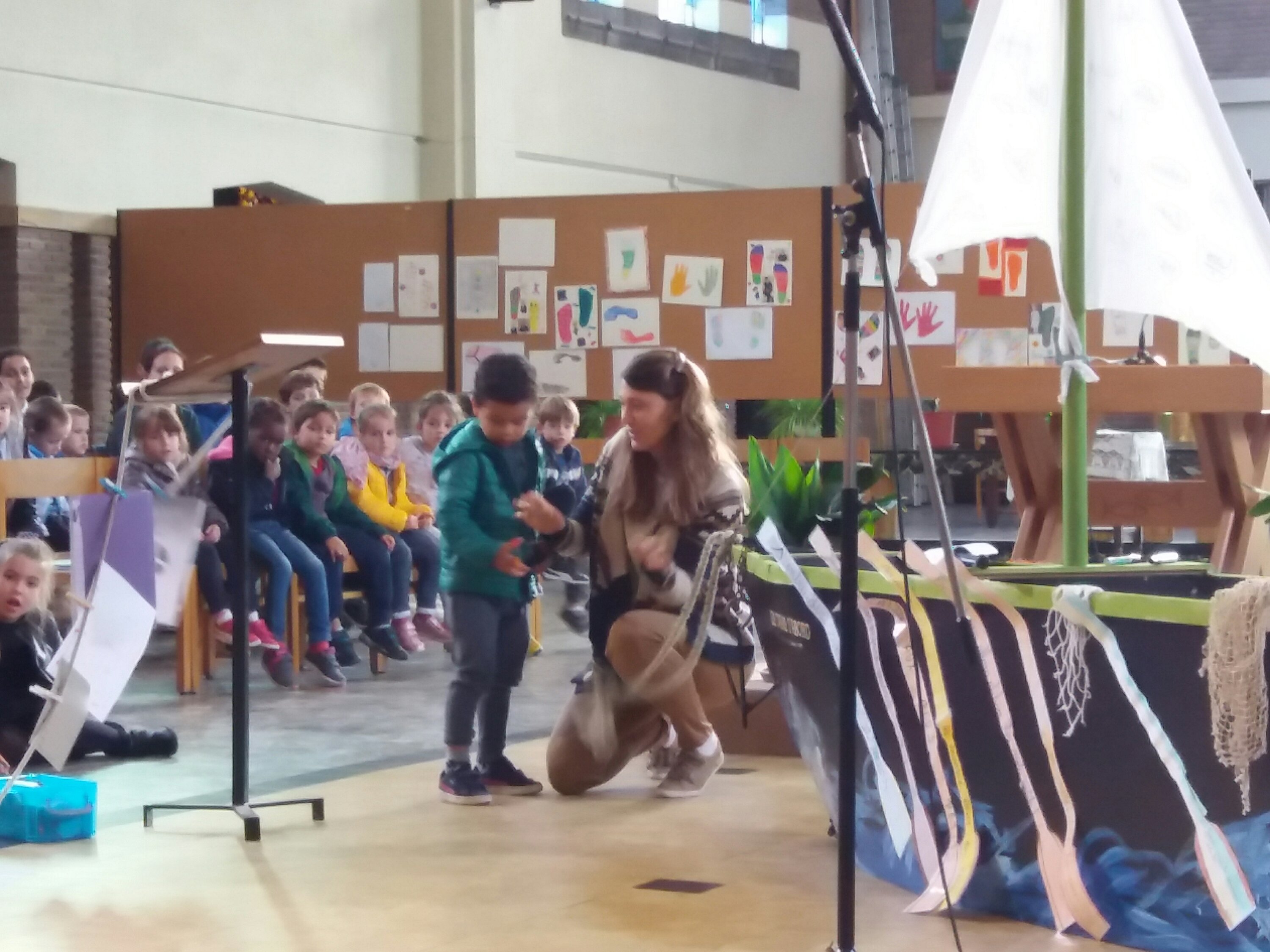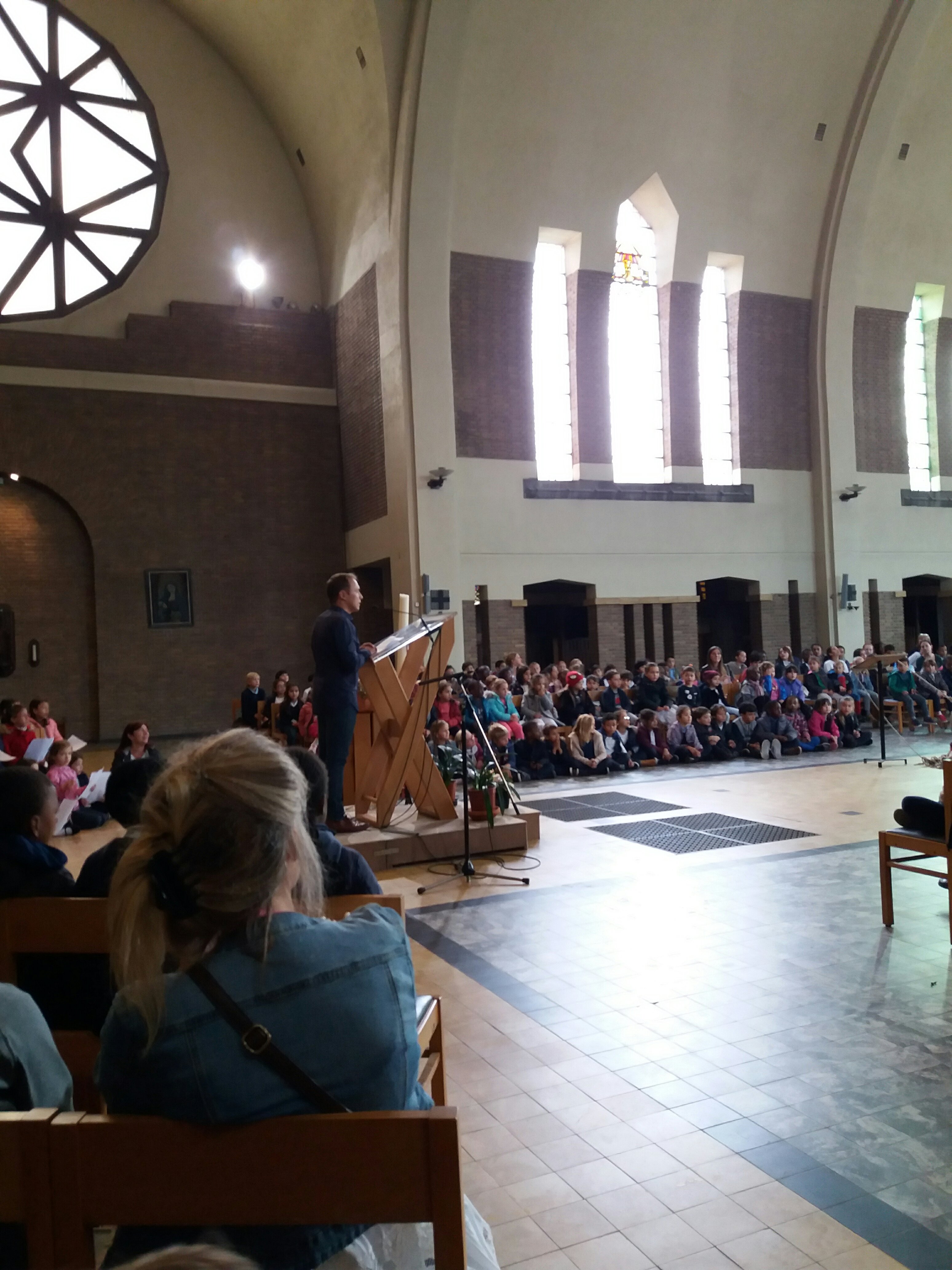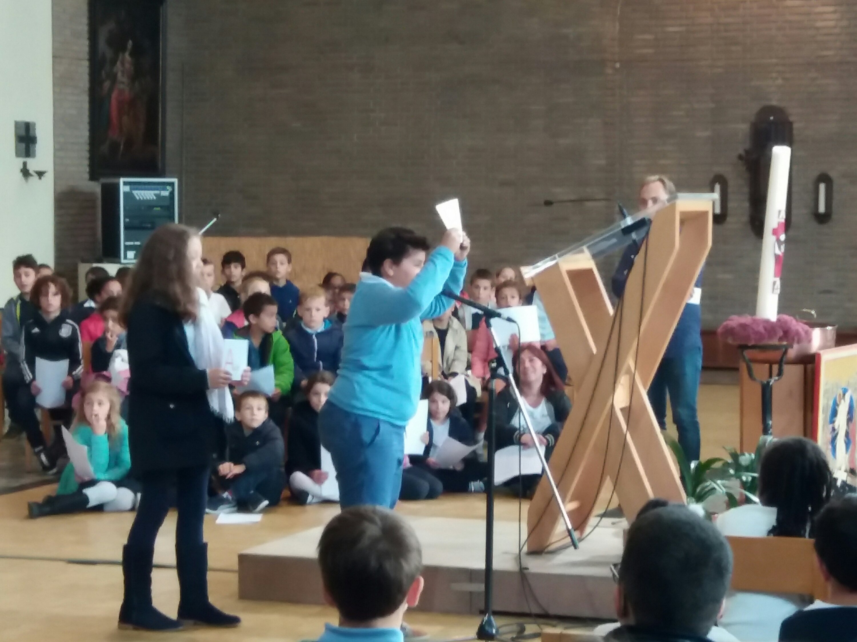 Aujourd’hui, 21 septembre, nous sommes allés à l’église pour notre célébration de la rentrée. Notre bateau se nomme « Les copains d’abord”, car l’amitié fait aussi partie de la réussite scolaire ! Nous avons chanté, présenté un acrostiche expliquant le nom de notre embarcation, mimé le texte de la Bible. Nous avons aussi accroché des objets représentant nos peurs sur l’amarre que nous avons ensuite coupée, car nous devons nous libérer de nos craintes pour avancer… tous ensemble.
