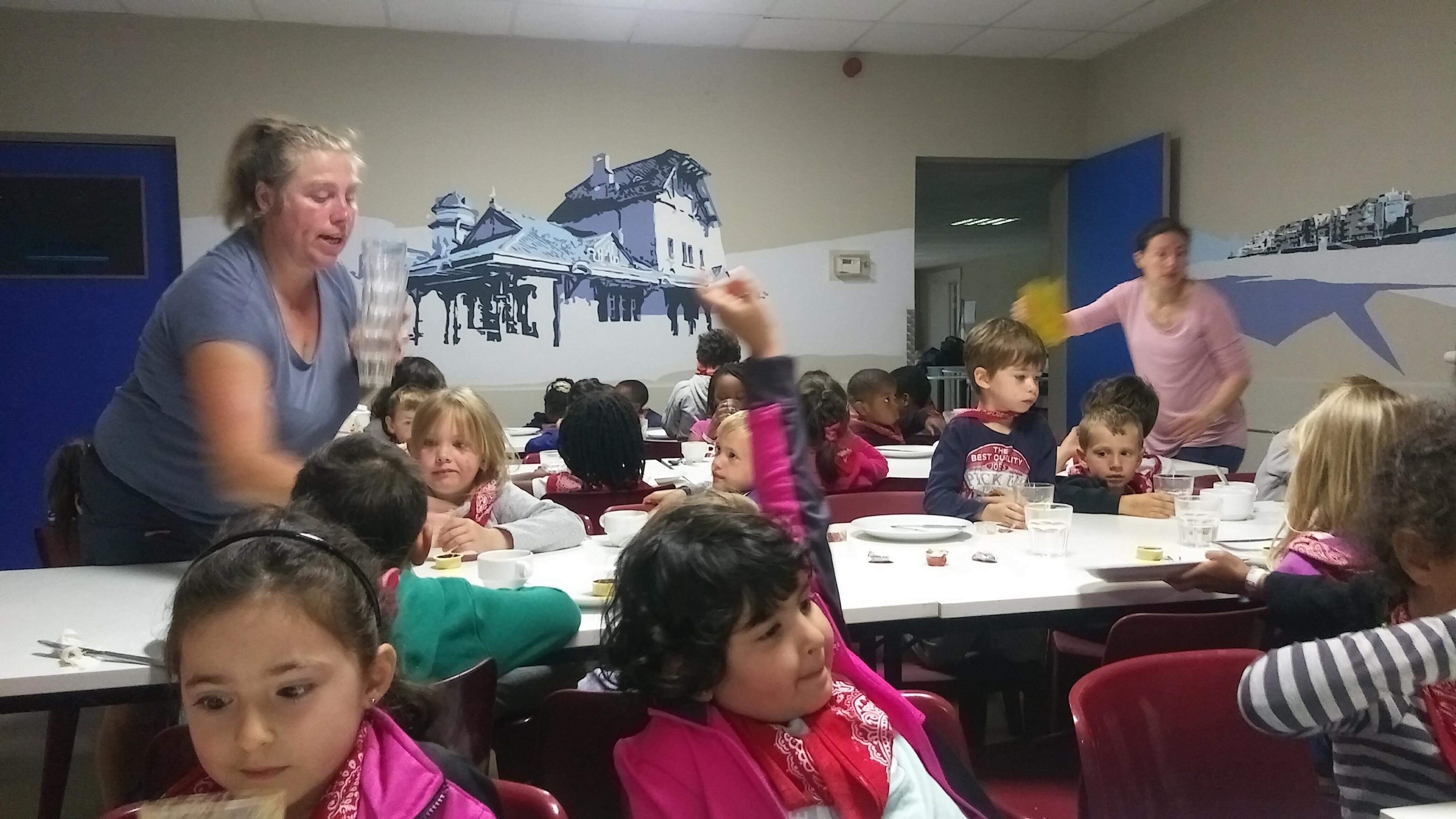 Petit déjeuner avant la surprise et le retour chez papa et maman!