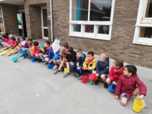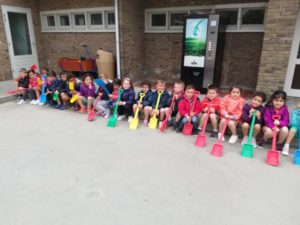 Après une nuit qui s’est très bien passée, un bon petit-déjeuner et nous voilà prêts pour aller à l plage et faire notre concours de châteaux de sable.
