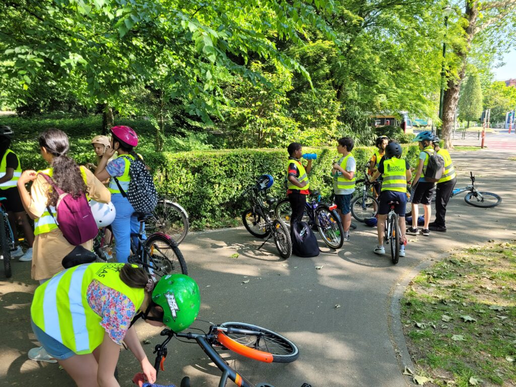 Après l’entraînement dans la cour et la vérification des vélos, nous sommes partis vers le parc du Laerbeek.